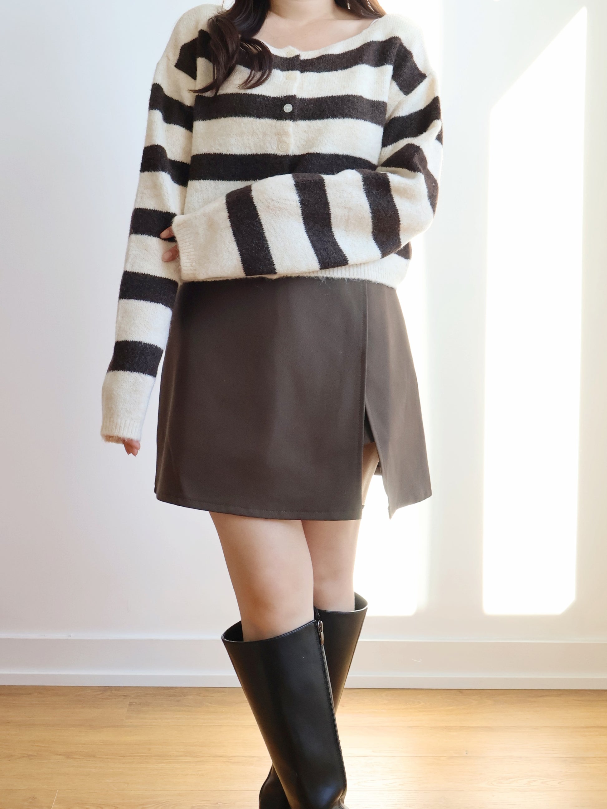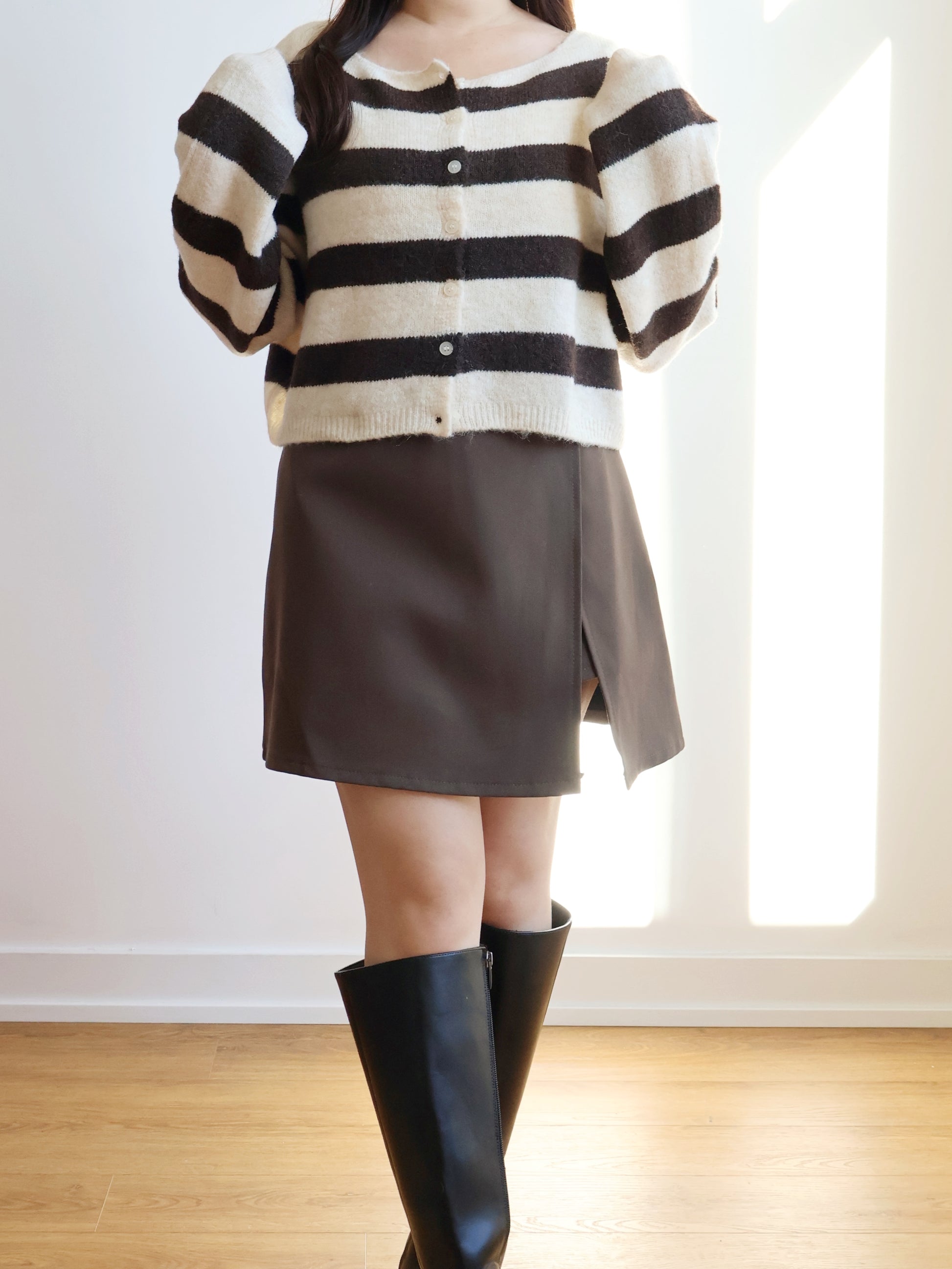 [10% WOOL] Raccoon Striped Cardigan(Coffee)