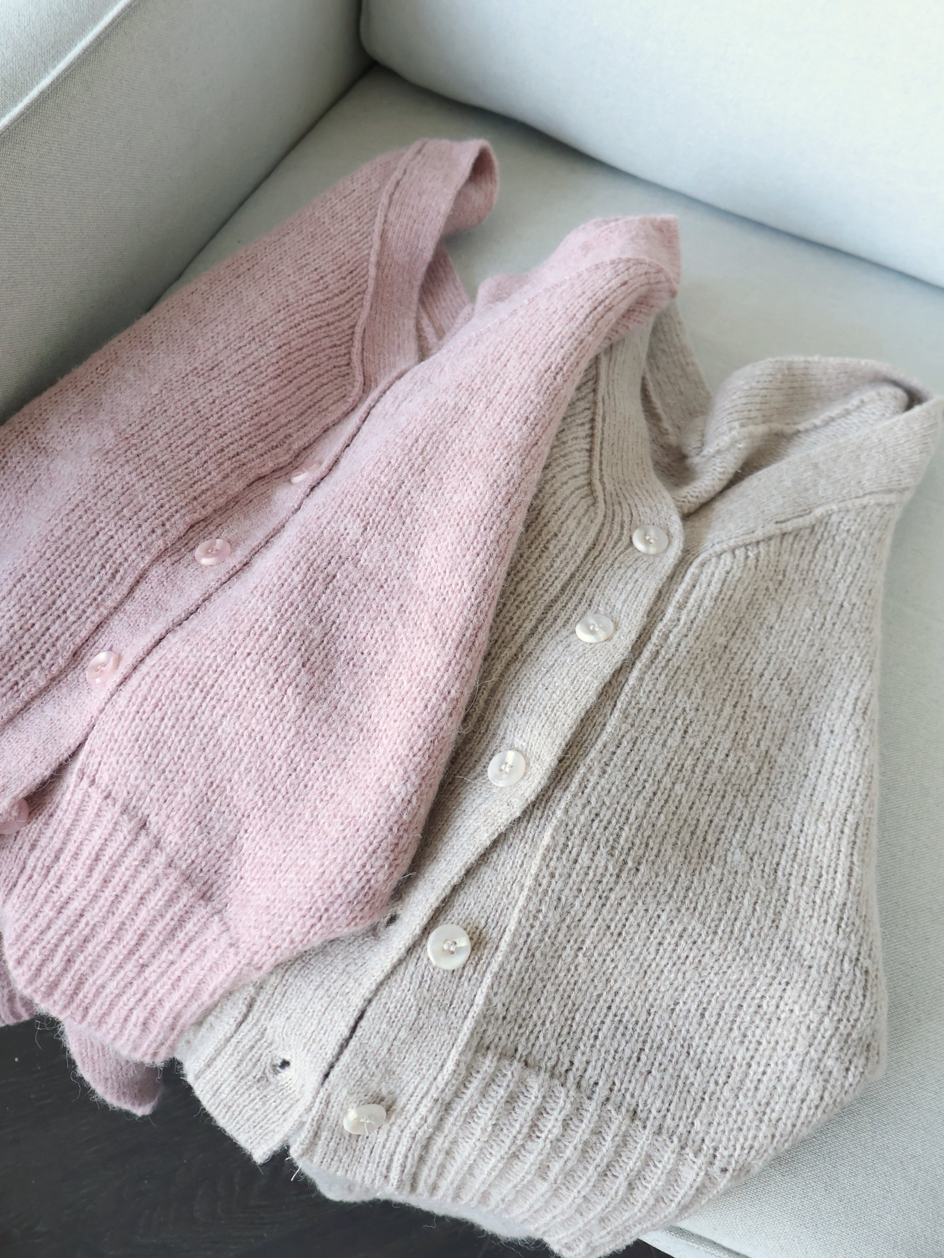 [10% WOOL] V-neck Warm Knit Cardigan (Pinkish purple)