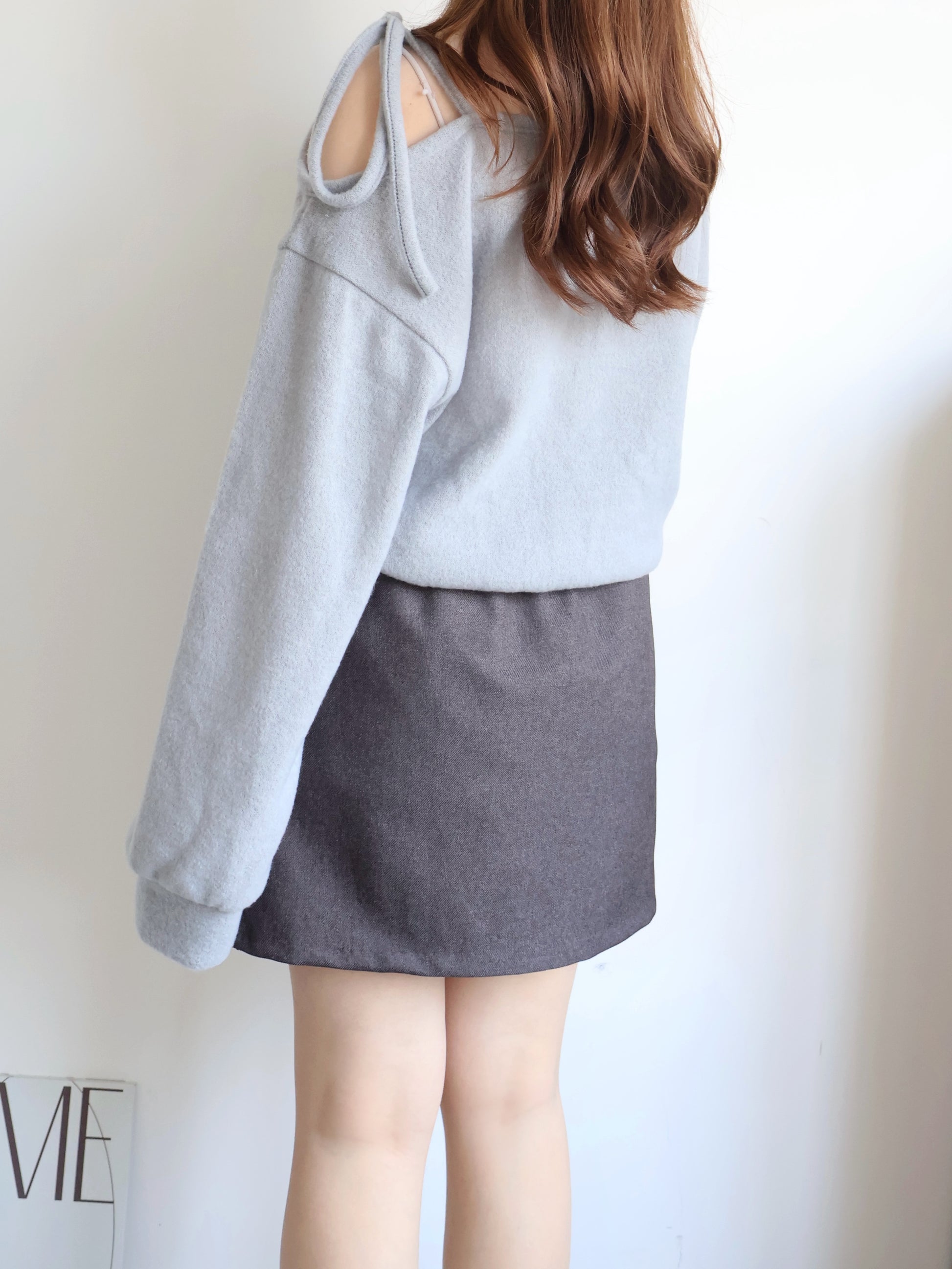 Asymmetric One-Shoulder Fleece Top(Grey)