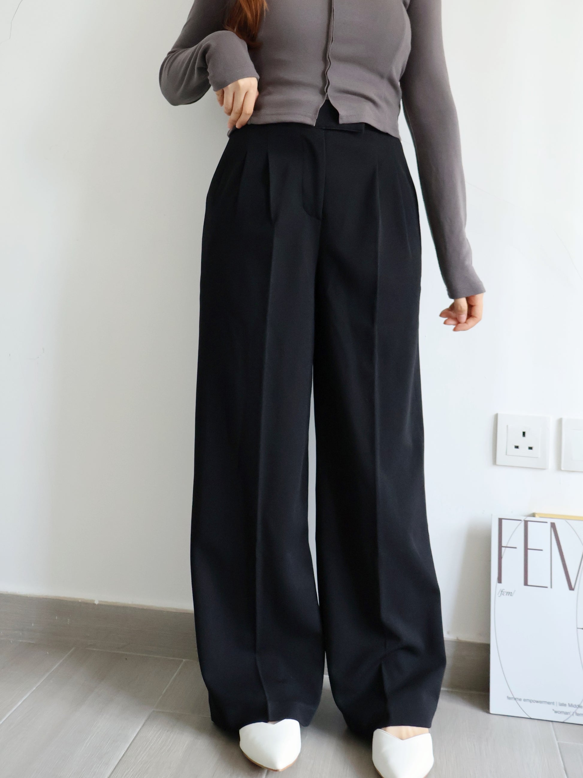 [Best Sellerš ] Wrinkle-free Fabric Pleated Straight Leg Trousers(Black)