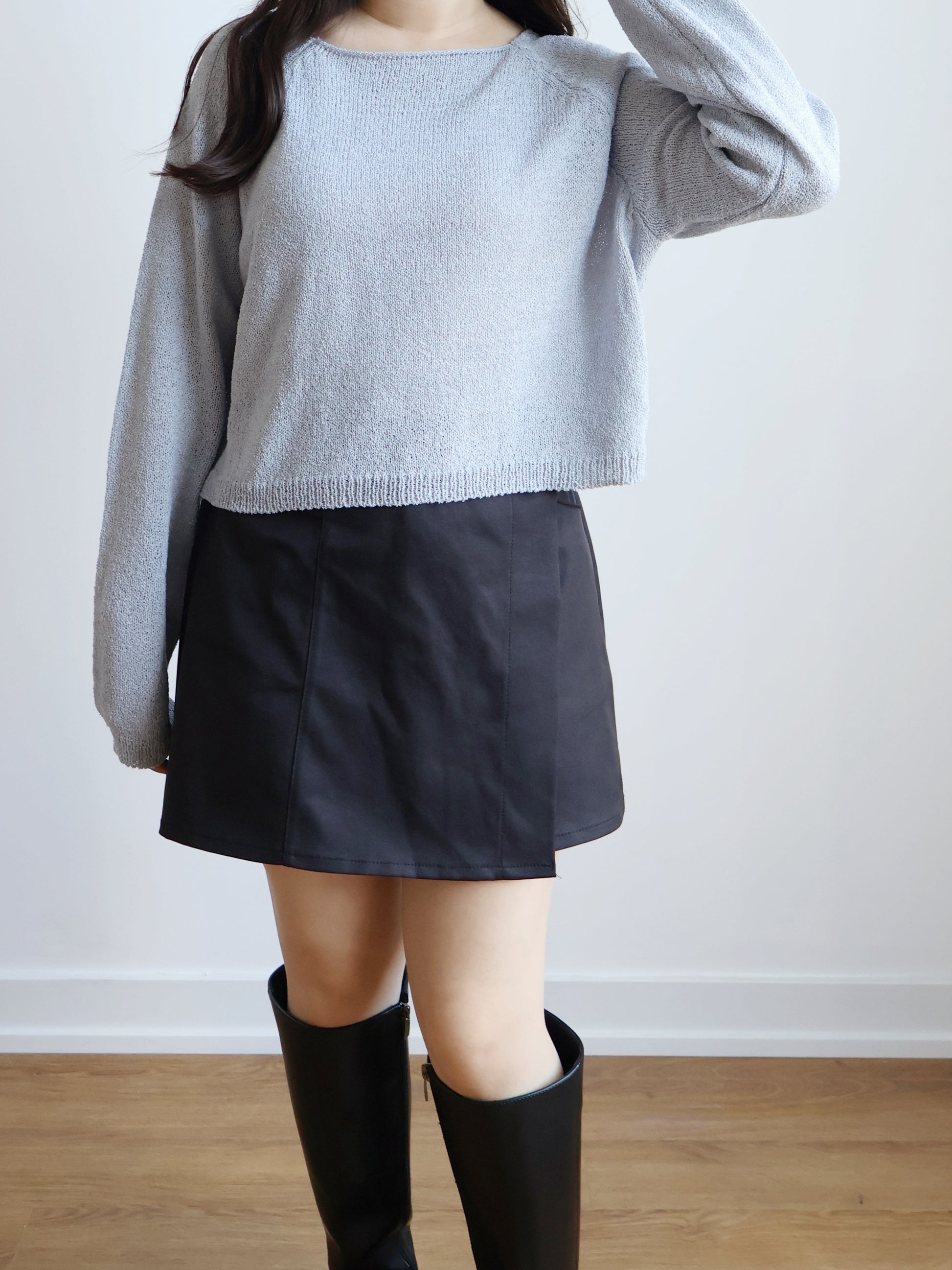Cloudy Boat Neck Oversized Sweaters(Greyish Blue)