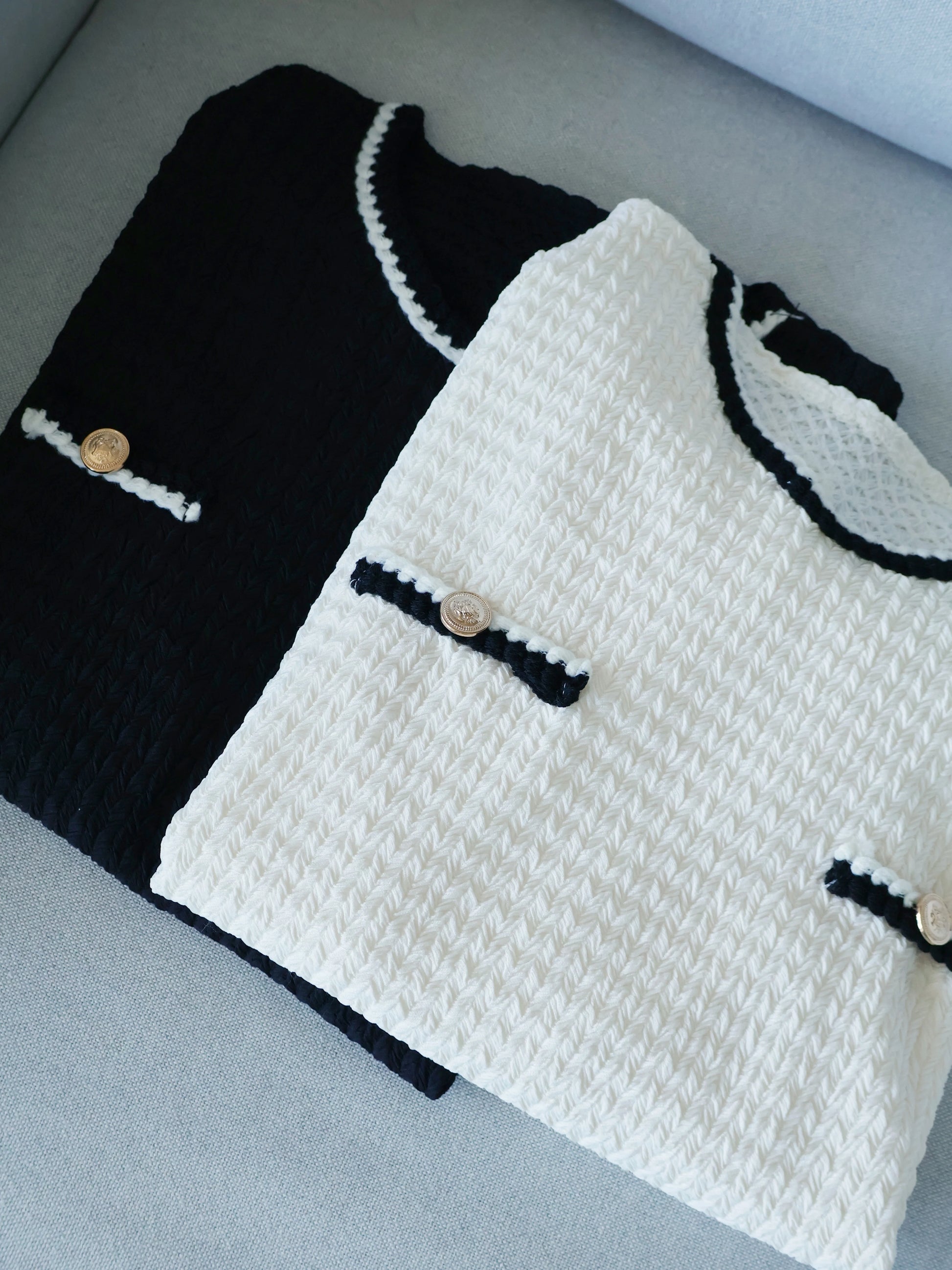 Coco Wave Pattern Embossed Button Top(Black)