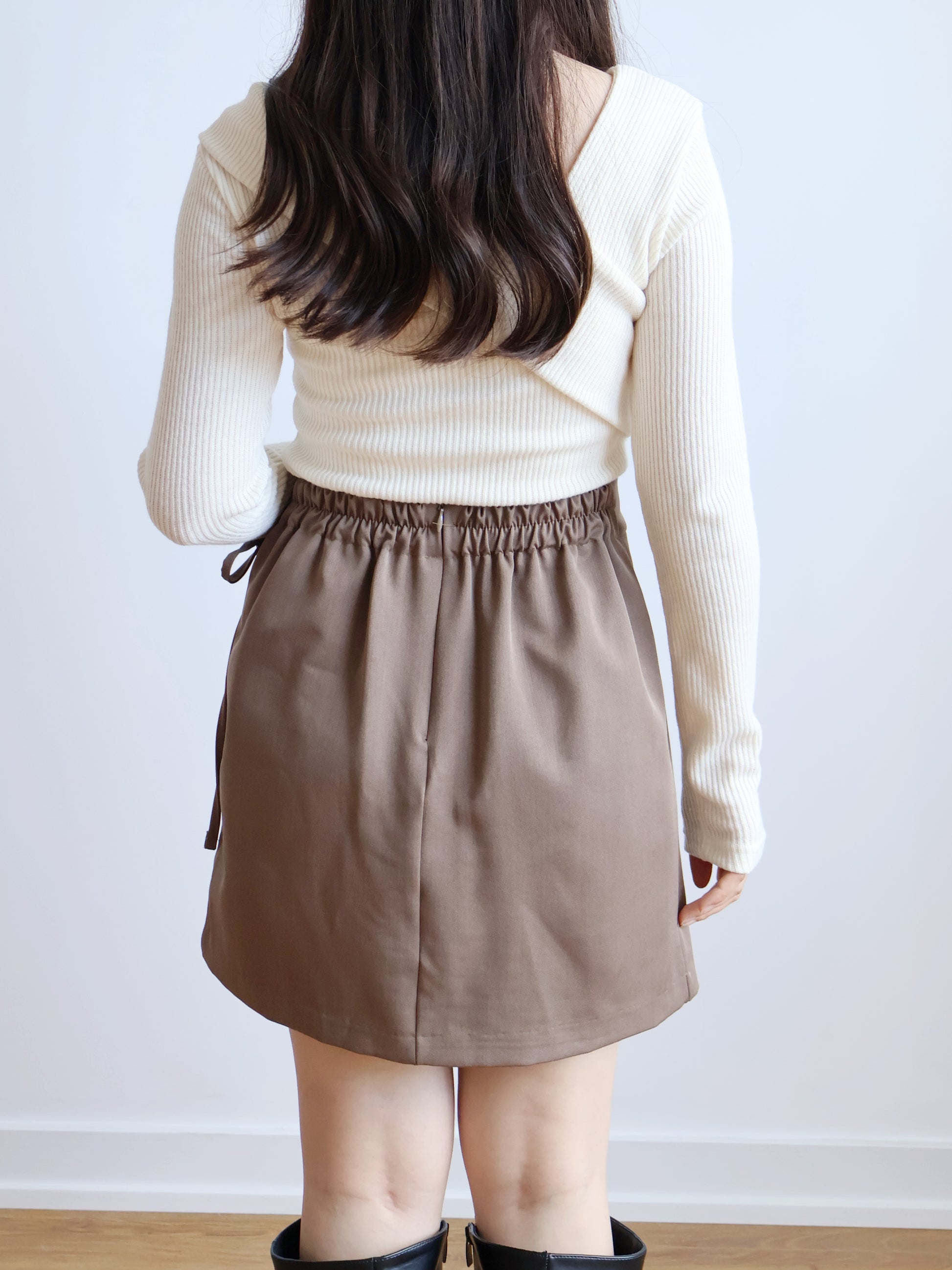 Earth-toned Overlapping Belted Mini Skirt(Brown)