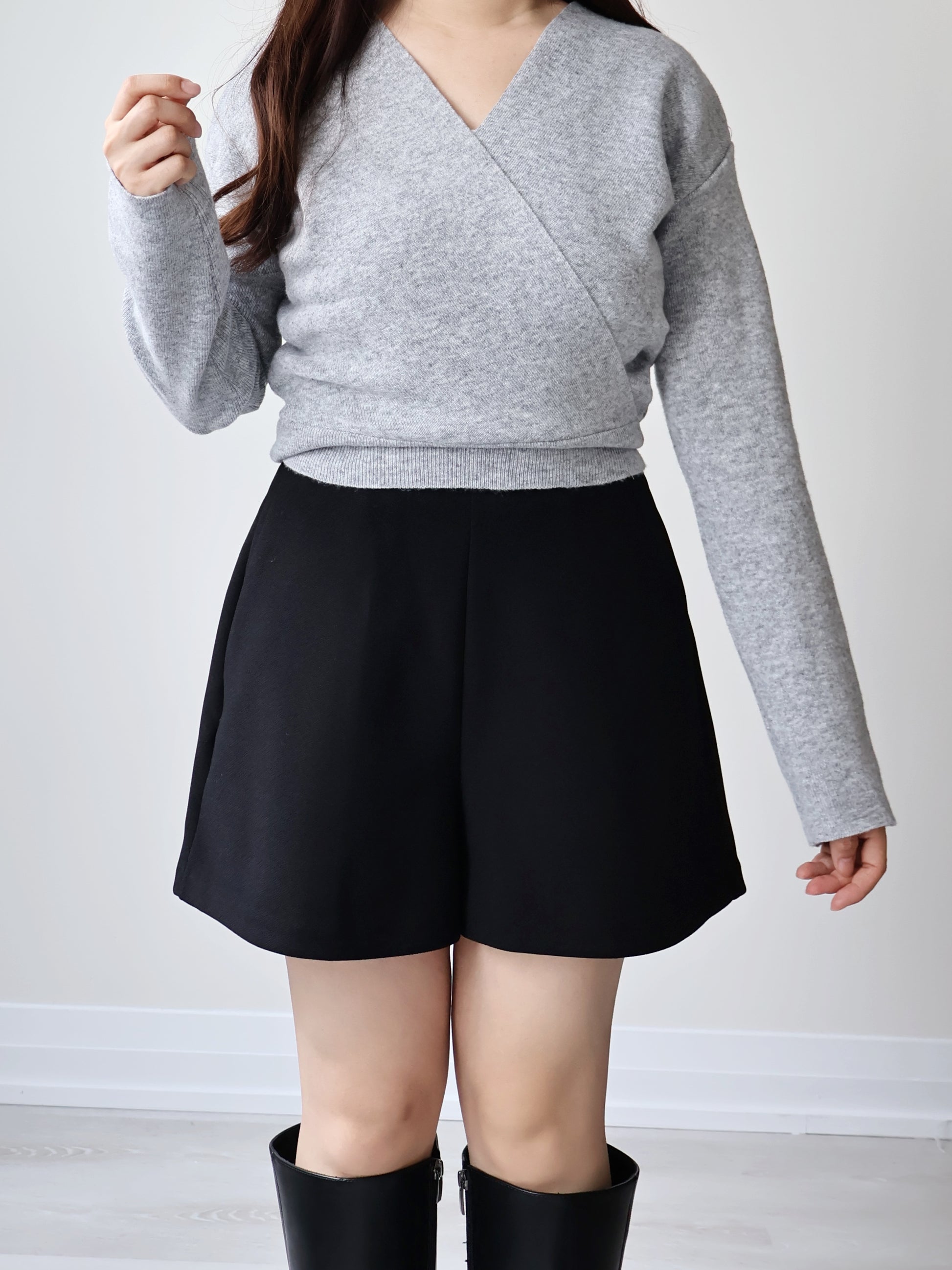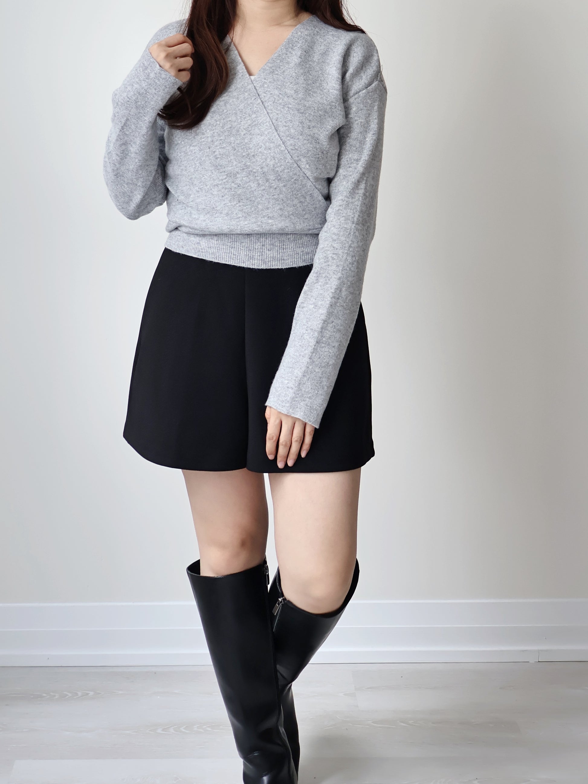Elegant Crossover V-Neck Waist-Defining Sweater(Light grey)