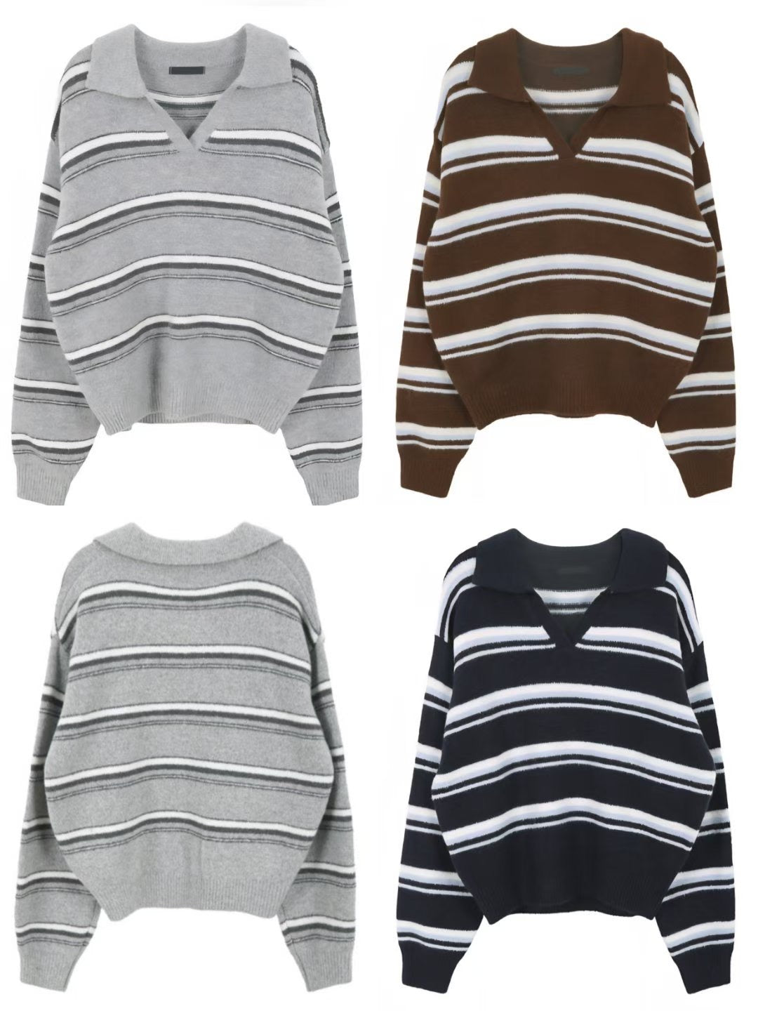 Lapel Striped Sweater(3 colors)