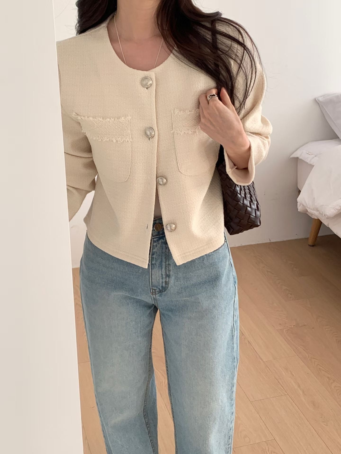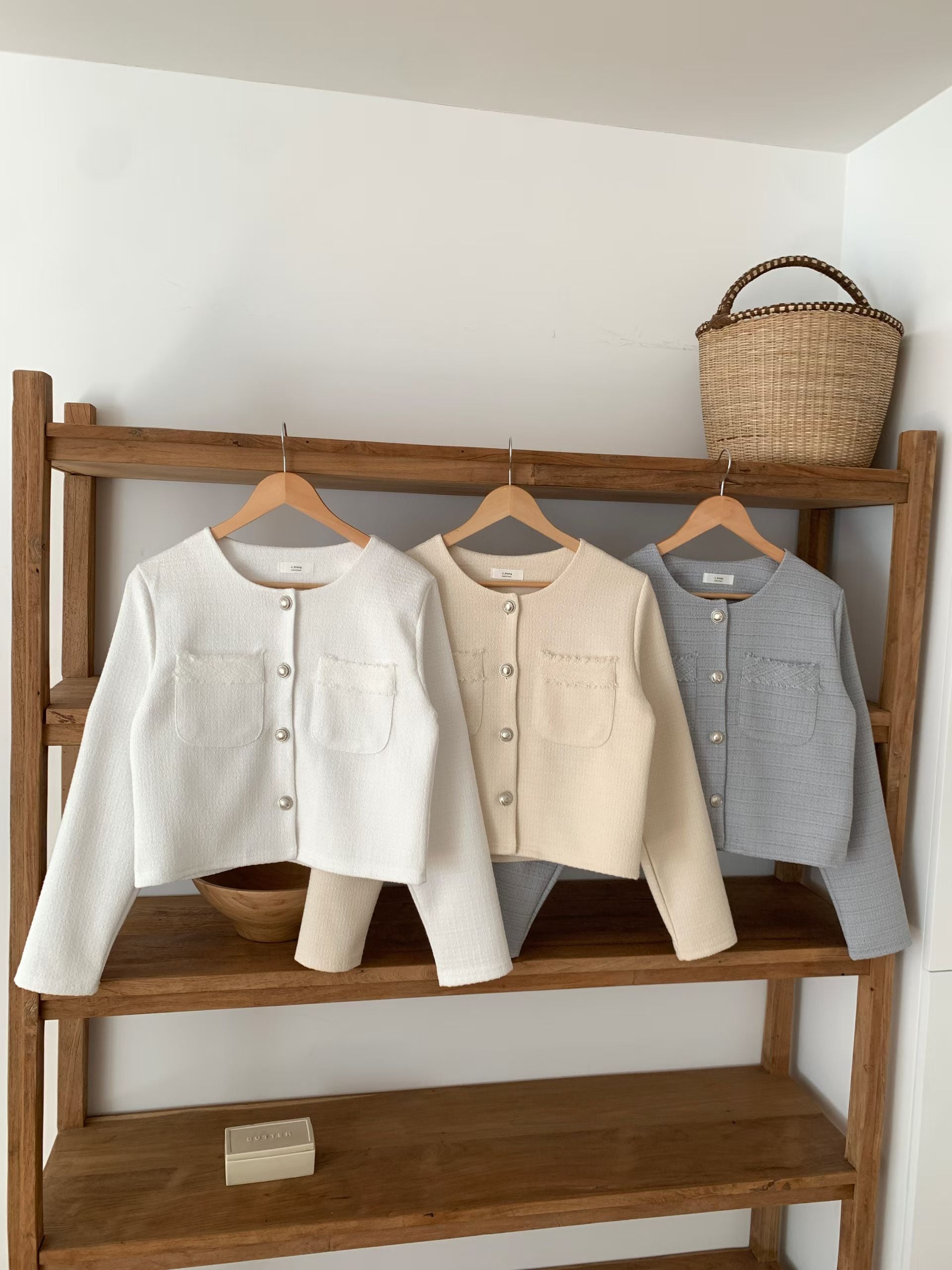 Luxe Embossed Buttons Tweed Jacket(3 colors)