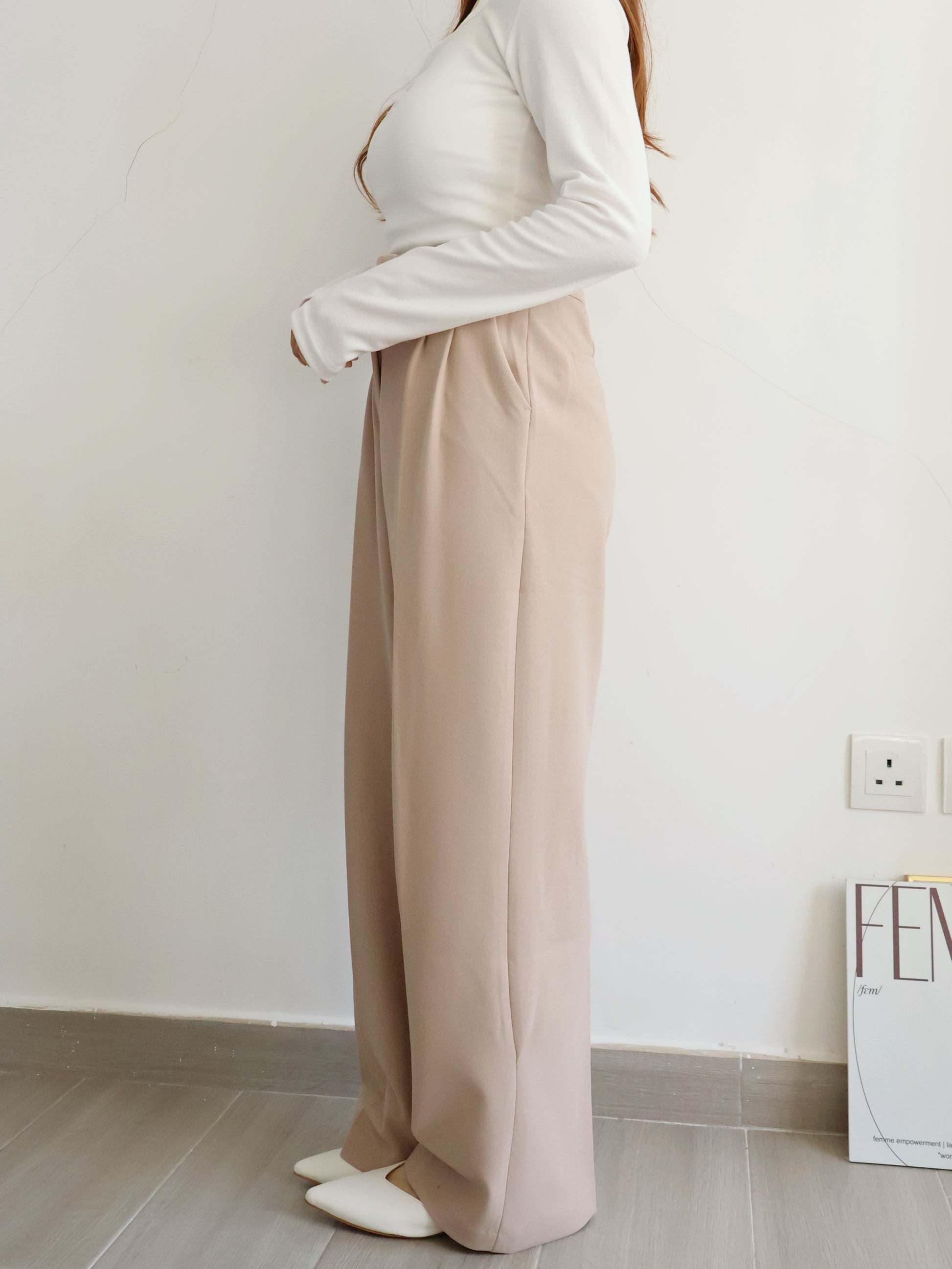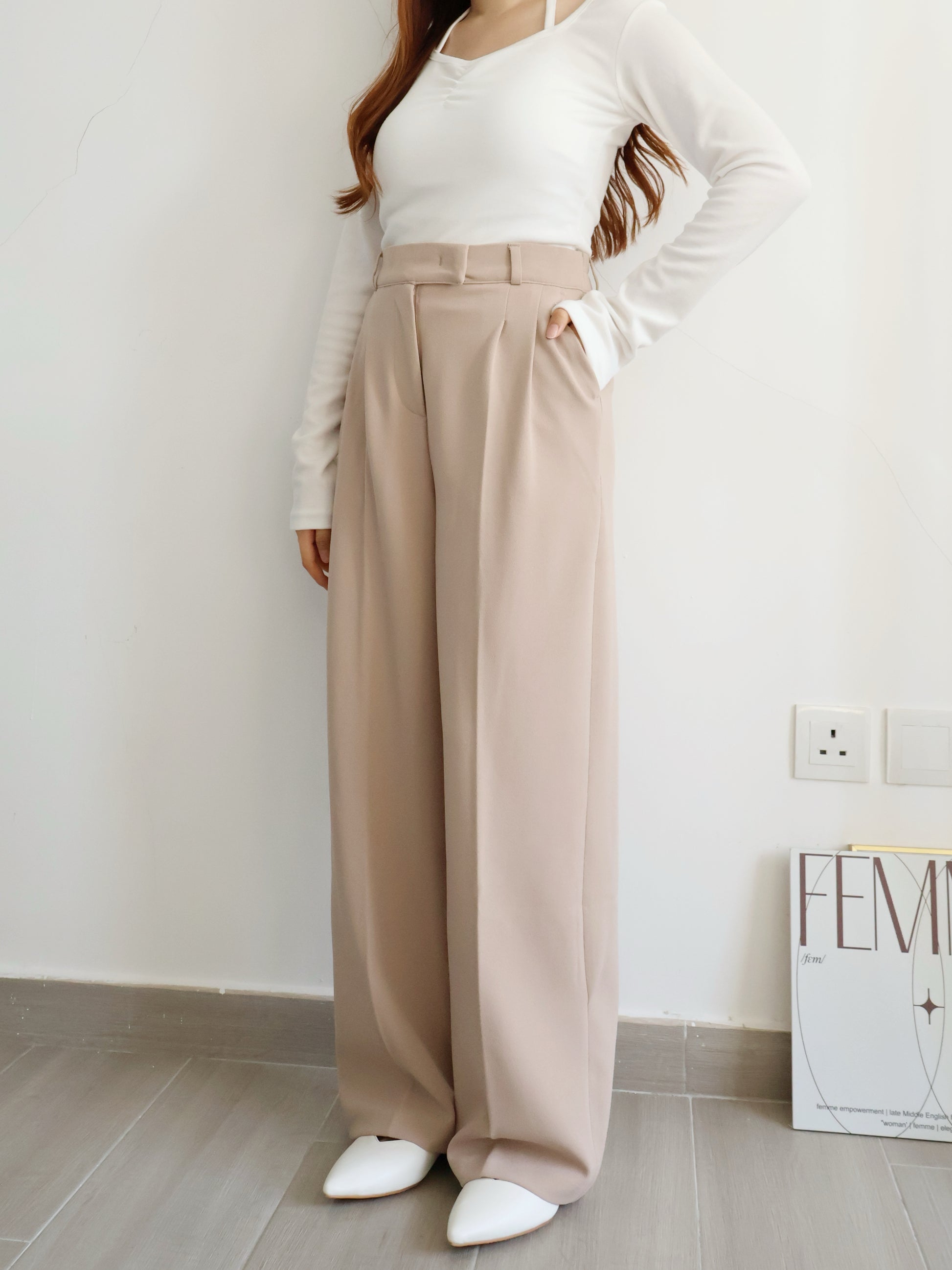 [Best Sellerš ] Wrinkle-free Fabric Pleated Straight Leg Trousers(Camel)