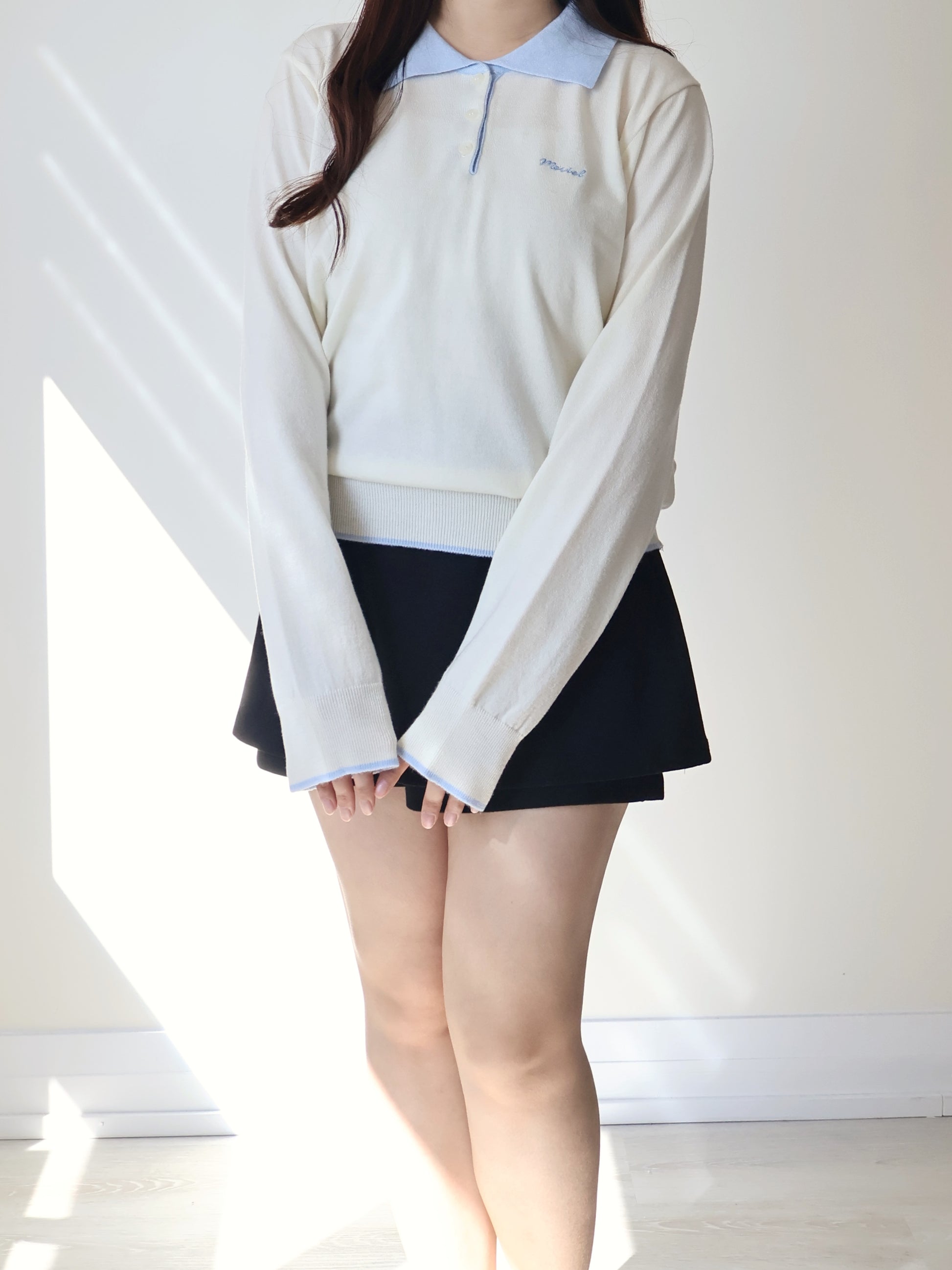 Teddy Collar Colour-Block Embroidered Soft Sweater(Cream)