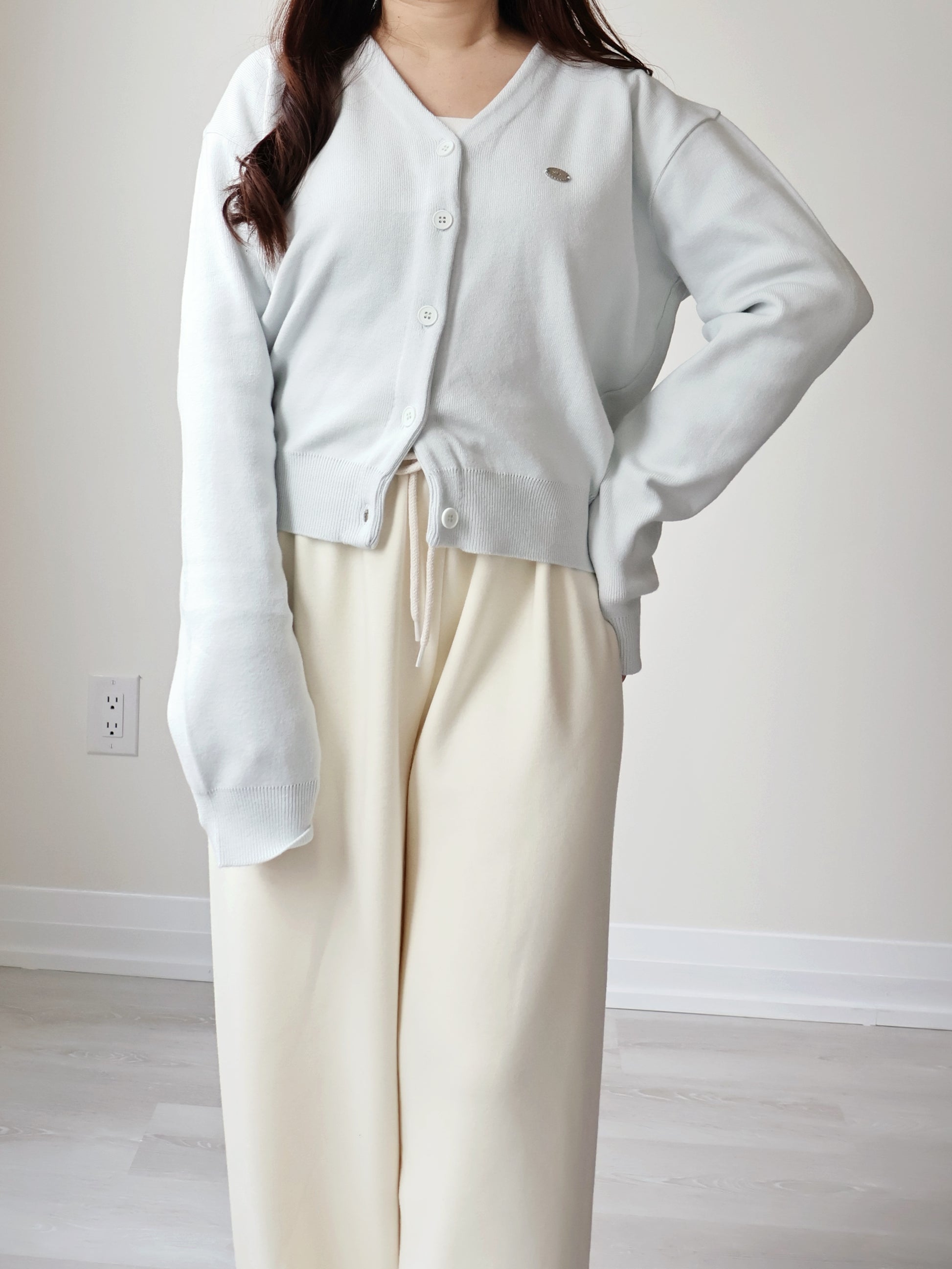 V-neck Silver Plaque Mochi Cardigan(Mint)