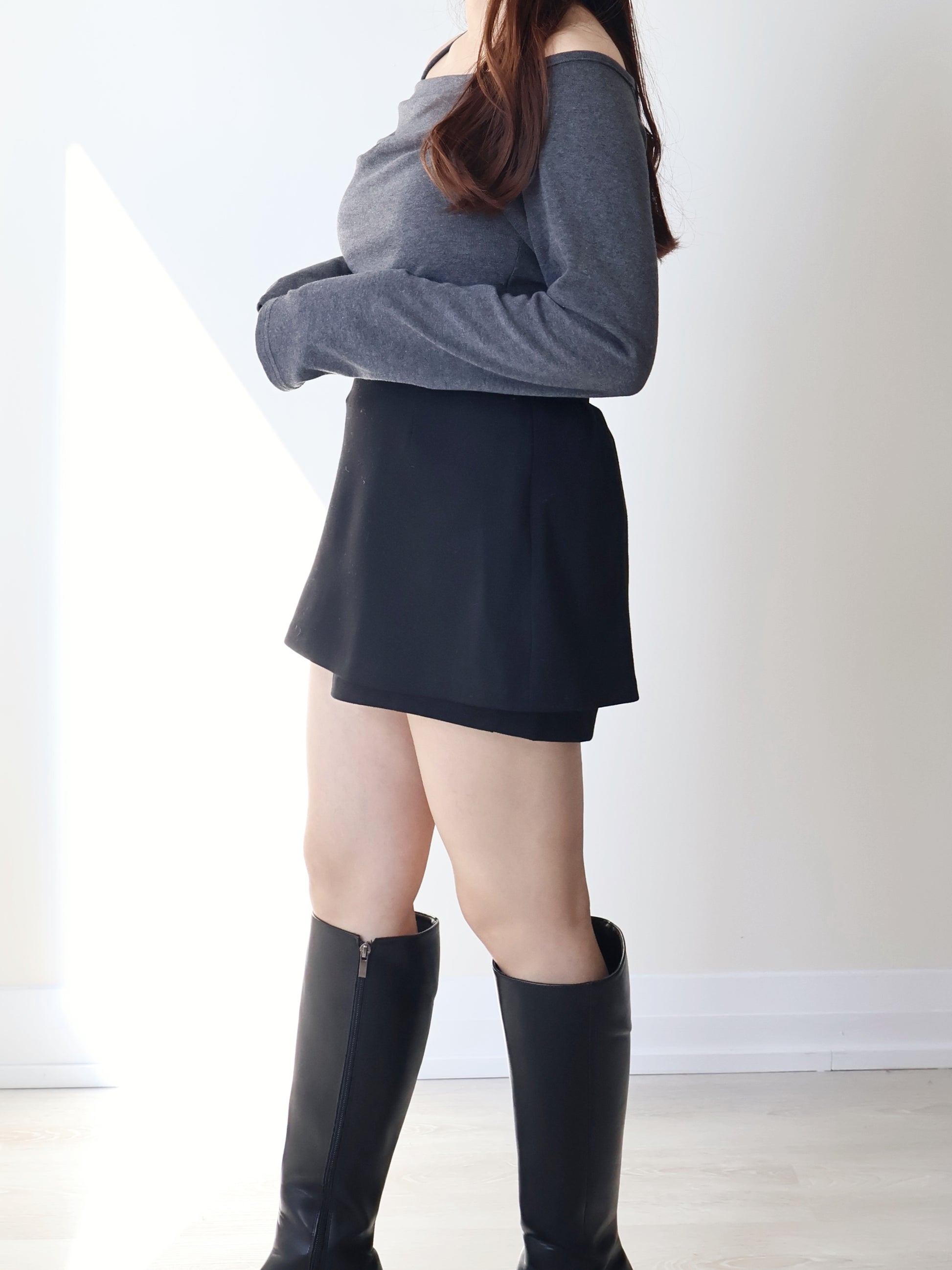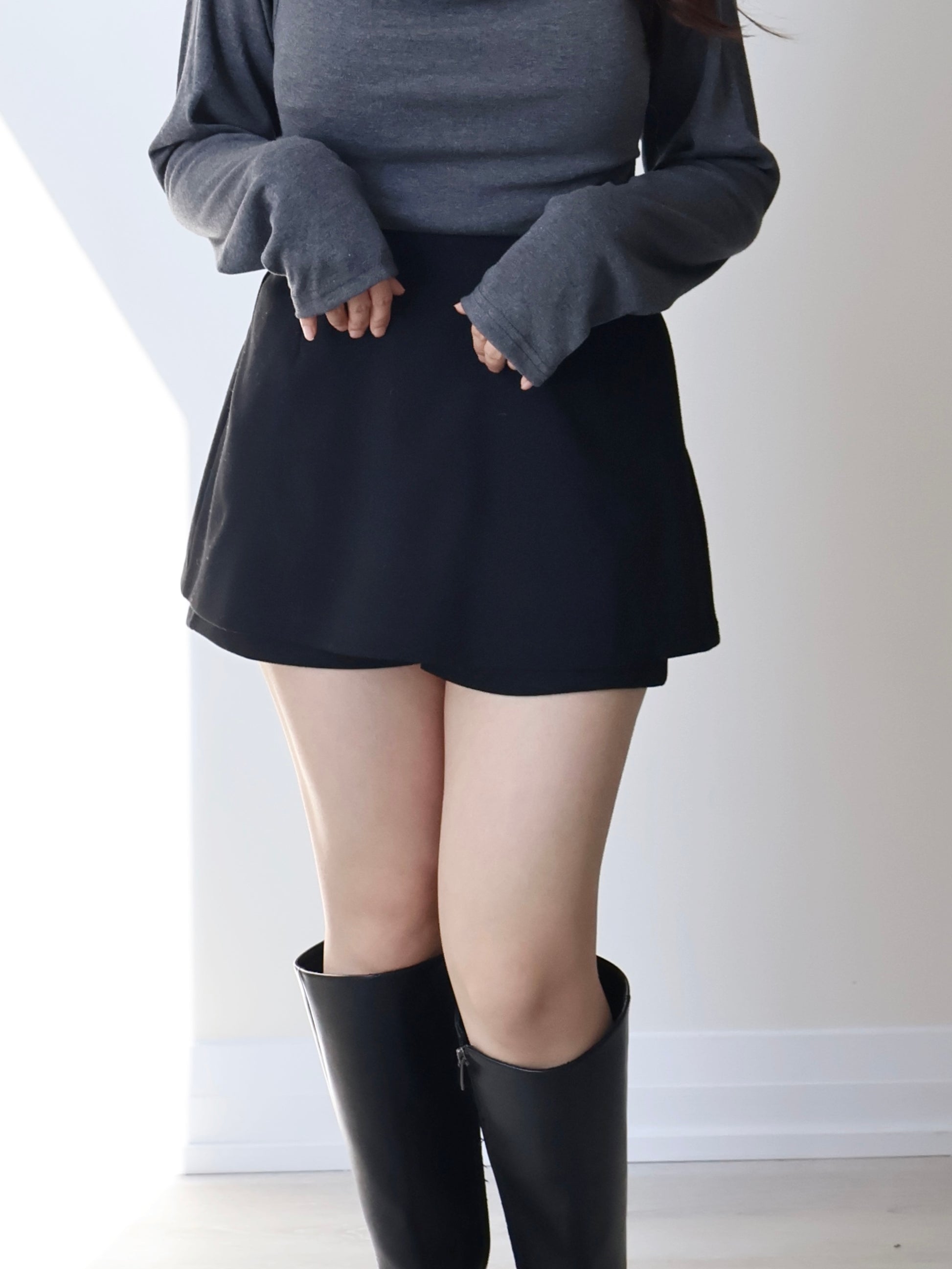 Wrinkle-Free Stretch Cotton A-Line Skort(Black)